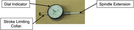 The Stroke of the Tube Sheet Pit Gauge is limited to approximately 0.100 (2.5mm) by the collar installed over the upper portion of the Dial Indicator's Spindle. This is done to ensure linearity between the Contact Point Spring and the internal Brass Plunger. As one reads on, the reason for the limited stroke is covered below. If a slightly longer stroke is required, the Limiting Collar can be shortened, thus increasing the Pit Gauge Stroke.