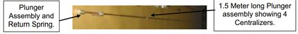 The Plunger Assembly simply connects the Dial Indicator to the Contact Point Spring. This assembly is easily removable on Standard Tube Sheet Pit Gauges, however on specials with a working length over 500 mm, it is not removable. The Plunger on specials is fitted with plastic centralizers to prevent sagging of the Plunger over there longer lengths. The Plunger on 1.5 meter Tube Sheet Pit Gauges is fitted with 4 Centralizers. The centralizers can not pass through the Hand Grip / Mounting Block, which is a press fit onto the tube with Anerobic Sealant to keep it together